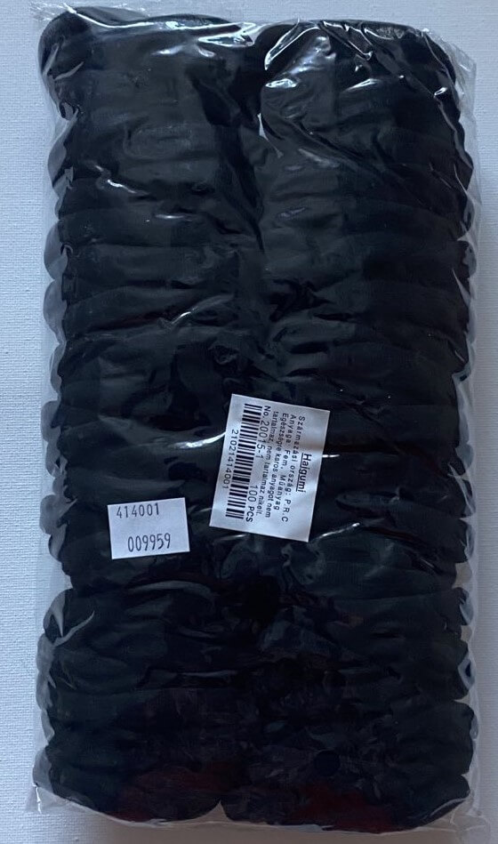 Egy csomag 100 db egyszínű hajgumit tartalmaz