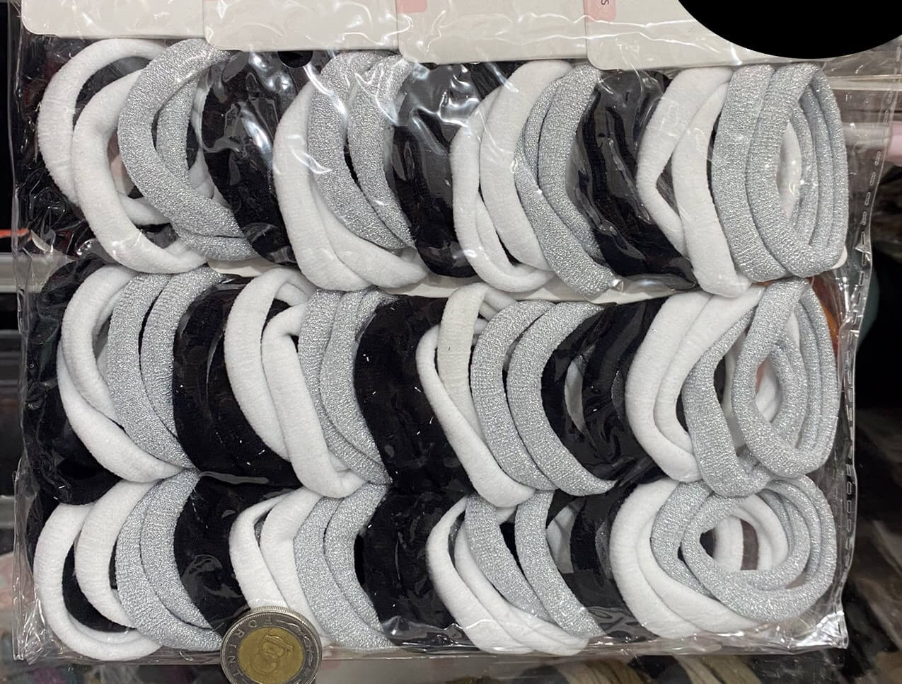 6 db-os,fekete/fehér színű, csillámos harisnya hajgumi szett