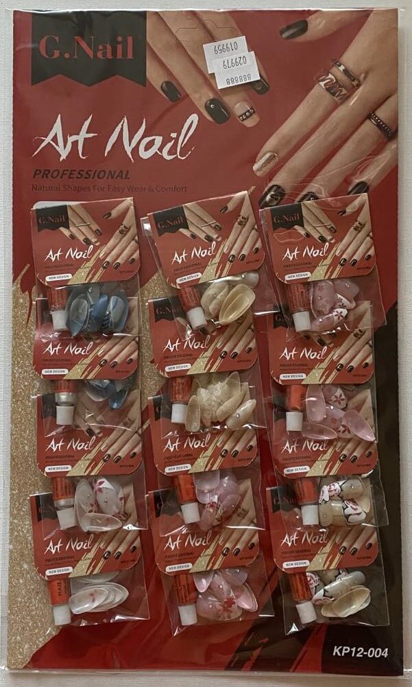 Egy ív 12 csomag különböző mintájú műkörömcsomagot tartalmaz